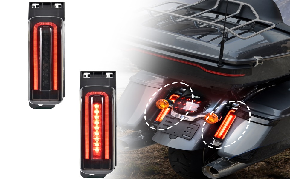 Blaze a Trail with Confidence: VEISUTOR Rear Fender LED Saddlebag Tail Lights for Harley Touring Models (2014–2024)